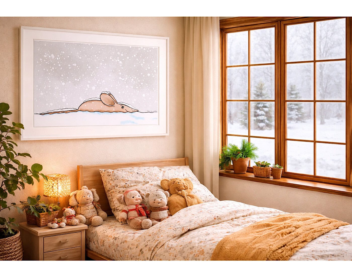 The framed version is delivered with a wooden frame and premium plexiglass: lightweight, clear and clean in appearance. It protects the print without adding extra weight and allows the colours to stand out beautifully. The paper does not touch the plexiglass, ensuring long-lasting quality.